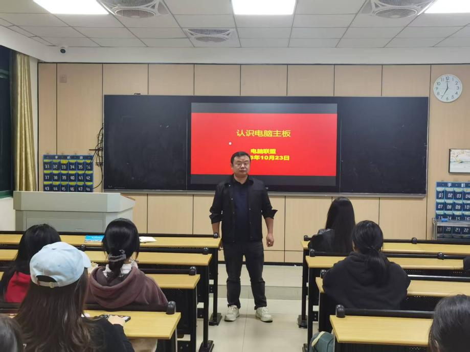 10月23日,电脑联盟社团在明德楼B406教室成功开展了“认识电脑主板”授课活动。此次活动旨在帮助同学们进一步了解电脑主板的相关知识,深化对计算机专业的理解,既促进相关专业学生的学业提升,也为非专业同学提供了了解计算机硬件的机会