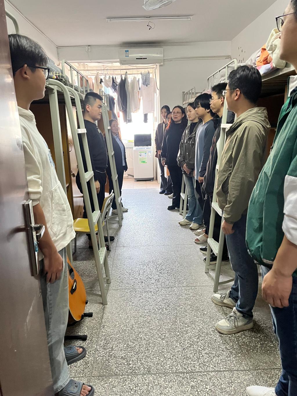 与此同时,辅导员们与同学们亲切交流,详细询问了大家的学习进度、生活作息以及心理状态,耐心倾听同学们在生活中遇到的困难与诉求,鼓励大家合理规划时间、保持良好的生活习惯,积极营造团结友爱、互助共进的寝室氛围。