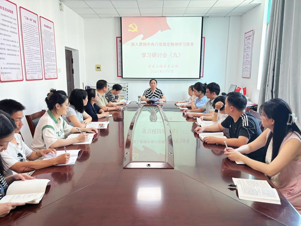 8月6日,信息工程系党支部组织全体党员在党员活动室开展了深入贯彻中央八项规定精神学习教育学习研讨会,会议由党支部书记主持。