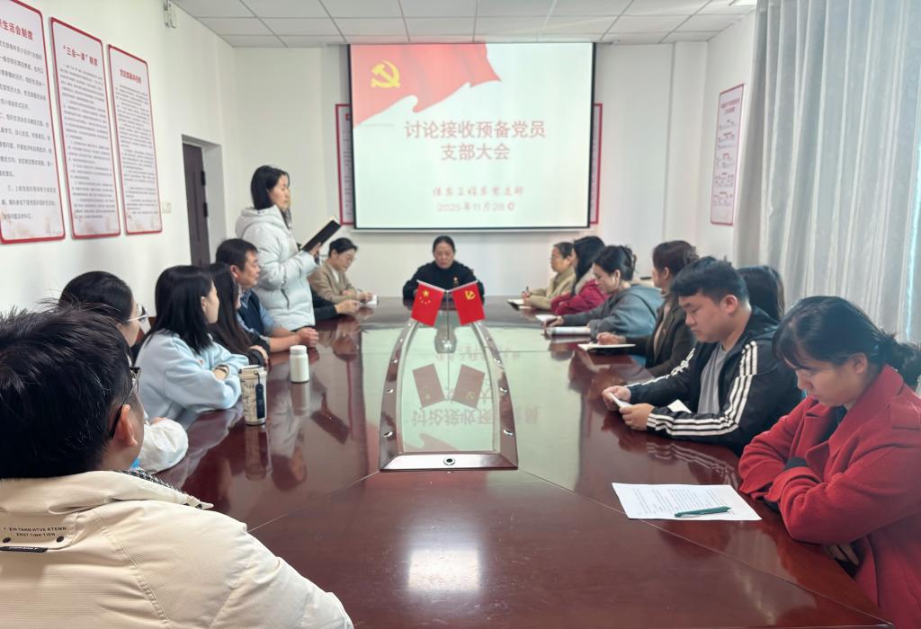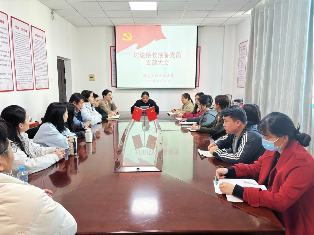 11月28日,信息工程系党支部组织全体党员在党员活动室召开了支部党员大会,讨论接收一名教师为预备党员事宜,会议由党支部书记主持。