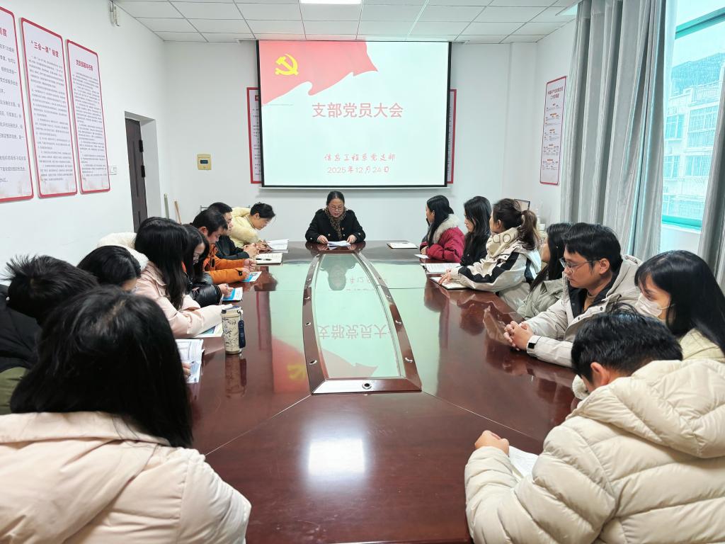 12月24日,信息工程系党支部组织全体党员在党员活动室召开了支部党员大会,会议由党支部书记主持。