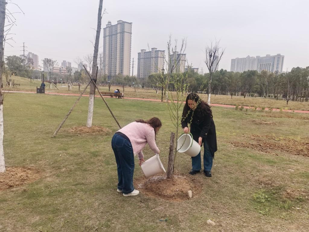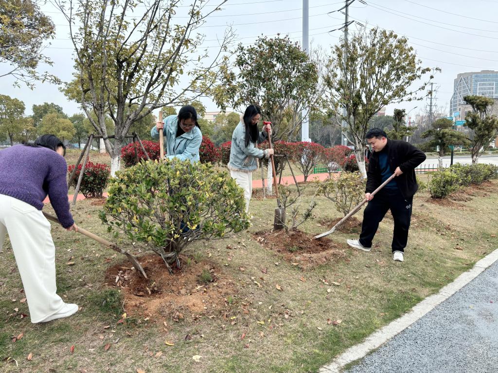 活动伊始,全体党员集中学习了《习近平论社会主义生态文明建设(2025年)》相关重要论述,引导大家深刻领会生态文明建设的核心要义与时代责任。随后,全体党员前往前头溪森林公园,挥锹铲土、扶苗培土、提水浇灌,分工协作、干劲十足,现场一派热火朝天的劳动景象,新栽下的树苗迎风挺立,为春日增添了一片新绿。植树活动后,党支部组织党员围绕学习内容与劳动实践开展了交流研讨,大家结合自身工作实际,畅谈对生态文明建设的认识与体会,分享了参与植树造林的感悟。